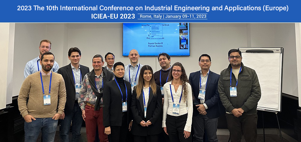 2023 The 10th International Conference on Industrial Engineering and Applications (Europe) was held in Rome, Italy during January 09-11 successfully. More than 80 experts from about 14 countries joint and shared the latest research on the hybrid conference. The sincere appreciation extends to all the individuals who have contributed to ICIEA-EU 2023 in various ways. Special thanks are extended to our colleagues in the program committee for their thorough review of all the submissions, which is vital to the success of the conference, and also to the members in the organizing committee who had devoted their time and efforts in planning, promoting, organizing and helping the conference. Accepted papers were published in ACM (ISBN: 978-1-4503-9853-4). (Online) Successfully indexed by EI Compendex and SCOPUS.